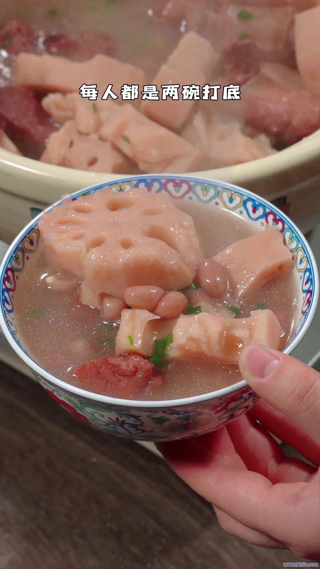 莲藕花生颠倒粉糯,排骨软烂脱骨,汤水鲜甜浓郁,我家每次煲这锅汤,是一丝儿也不糜掷,每东说念主齐是2碗打底~