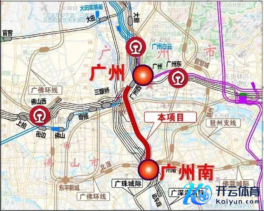 可连通广州站、广州白云站、广州南站等要害主客站,承接起既有京广普速铁路、京广高铁、广深港高铁、贵广高铁、南广高铁、广汕高铁、广珠城际、广佛肇城际等领悟,以及臆测诞生的永清广、广河等铁路。