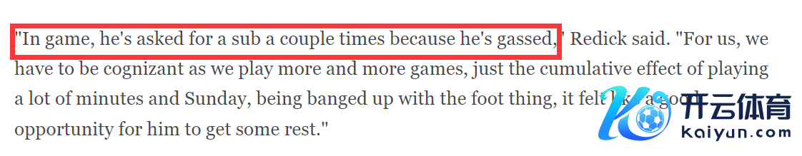“在比赛中,他几次条件替换下场,因为他仍是困乏不胜了,”雷迪克说。“对咱们来说,咱们必须意志到,跟着比赛越来越多,咱们打了许多分钟,他脚部受伤后,让东说念主嗅觉是本领让他休息了。”
