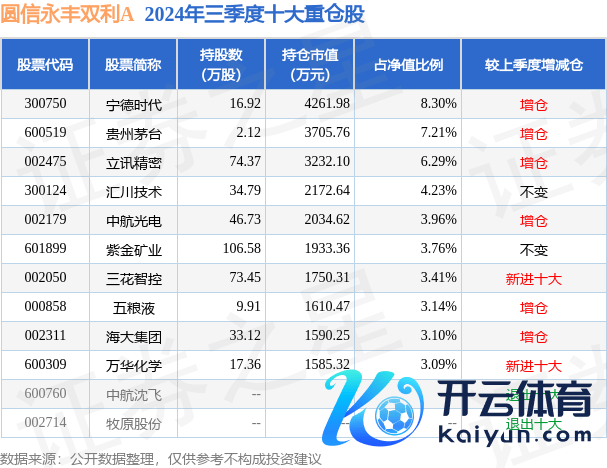 圆信永丰双利A为羼杂型-天真基金,证实最新一期基金季报败露,该基金财富成立:股票占净值比93.1%,债券占净值比5.02%,现款占净值比2.3%。基金十大重仓股如下: