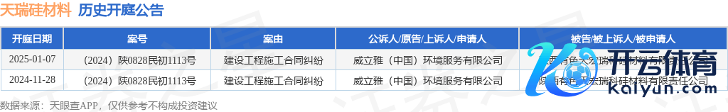本站音书,凭据天眼查APP融会九游体育app娱乐,近日公布了一则陕西有色天宏瑞科硅材料有限包袱公司四肢被告/被上诉东谈主的开庭公告,详备本色如下: