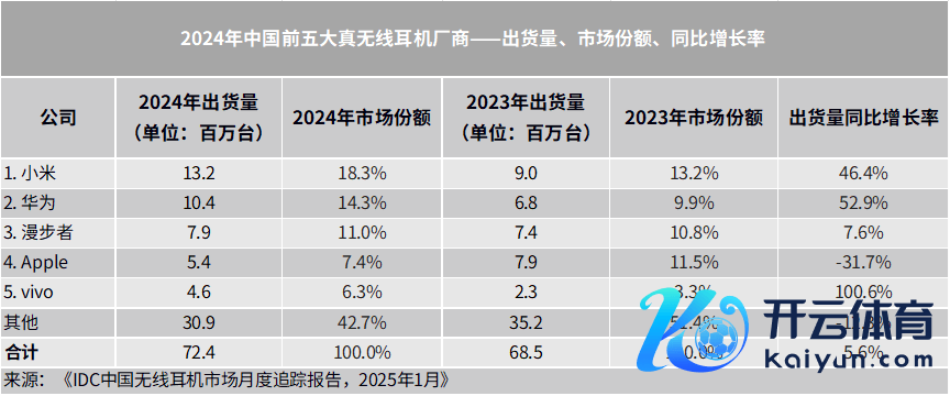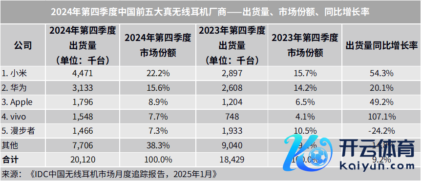 IT之家 3 月 4 日音信九游体育app(中国)官方网站,海外数据公司(IDC)当天发布的《中国无线耳机市集月度追踪瓦解》泄漏,2024 年中国蓝牙耳机市集出货量达到 11,353 万台,同比增长 19.0%。其中第四季度市集的出货量为 3,080 万台,同比增长 20.1%。