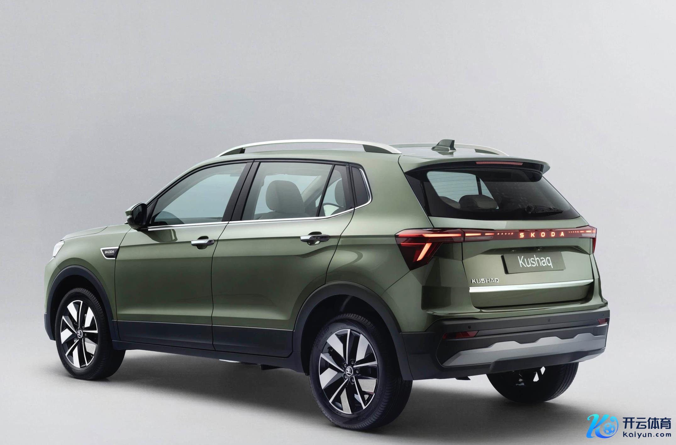来到车身侧面,从斯柯达Kushaq官方图片来看,车身详尽较为中和,也愈加适当德系车的千里稳、低调、内敛的立场。车顶加入了银色全尺寸行李架,车顶尾部还配备了鲨鱼鳍模式的玄色天线盘算。车窗加入了玄色打底银色描边的粉饰边框,前翼子板处加入了醒方针Kushaq徽标,笔挺的肩线邻接了系数车身,拱形的轮眉搭配着玄色的侧裙,下方还配备了银黑双色的17英寸铝合金轮圈。车尾愈加饱胀委宛,让咱们短暂联思到了斯柯达柯迪亚克,巨大的后扰流板、邻接式的尾灯,银黑双色的后包围,眉目感也愈加丰富。