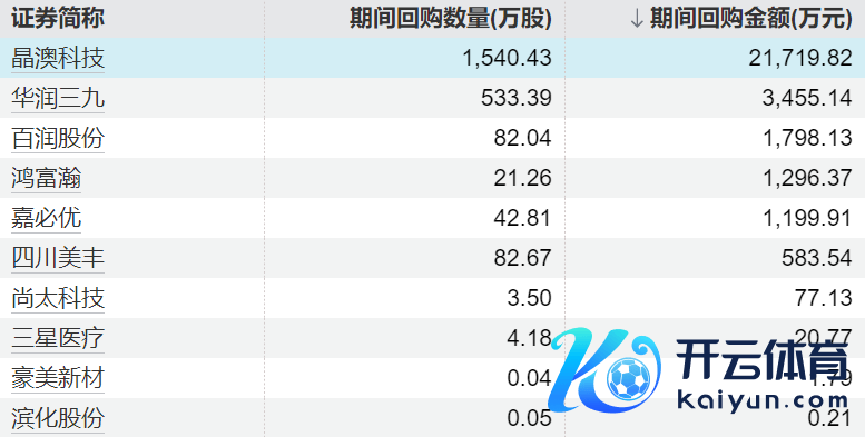 10家上市公司股票获回购现金九游体育app平台,晶澳科技回购金额最高10家上市公司股票获回购,晶澳科技回购金额最高