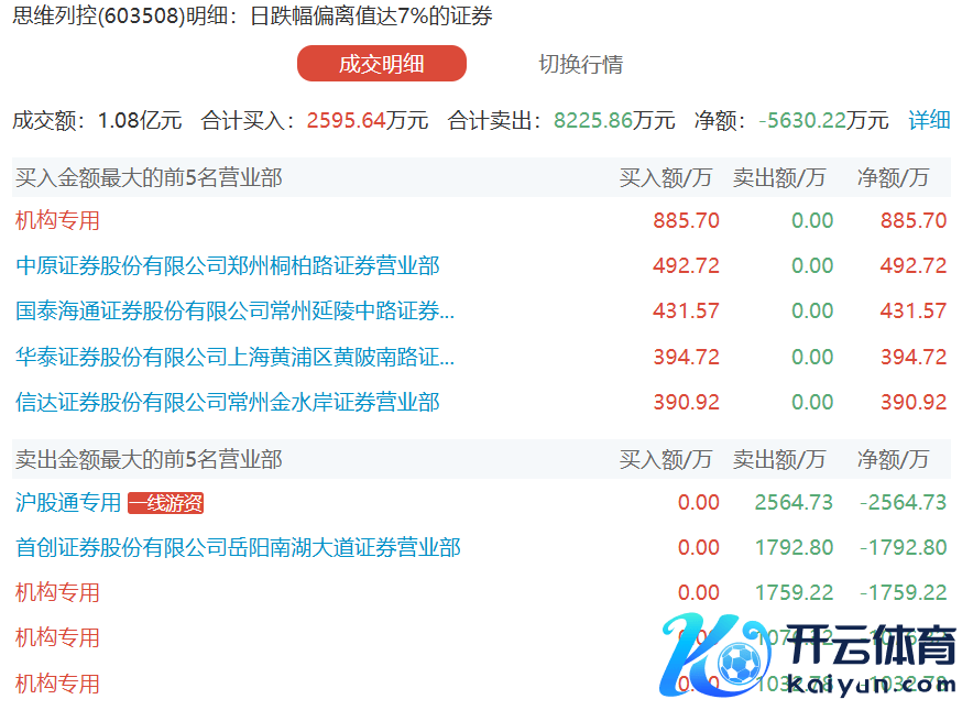 想维列控本日跌9.87%,有4家机构专用席位净卖出1.25亿元想维列控本日跌9.87%,有4家机构专用席位净卖出1.25亿元